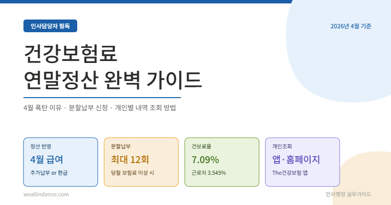 정산 결과는 4월분 건강보험료에 합산 부과되며, 회사 급여 처리 방식에 따라 4월 급여명세서에서 추가 공제(토해내기) 또는 환급으로 체감된다.